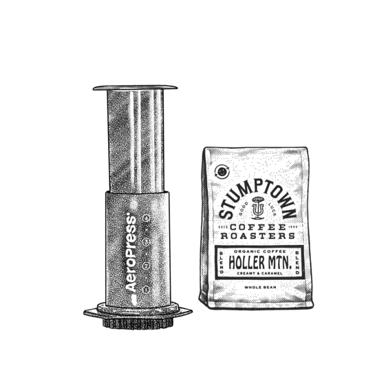 The AeroPress was invented in 2005 by Alan Adler, a Stanford University engineering lecturer. Since then, it has become a favorite among coffee enthusiasts worldwide. Our team of coffee experts at Stumptown has years of experience brewing and tasting specialty coffee, and we’re passionate about sharing our knowledge with coffee lovers everywhere. If you're looking for a portable and lightweight method to brewing coffee the AeroPress is a great choice! Our brewing method produces a sweet, full-bodied cup, and it's perfect for use at home or on the go. To make a perfect cup of coffee with the AeroPress, follow simple steps listed below in our Brew Guide.