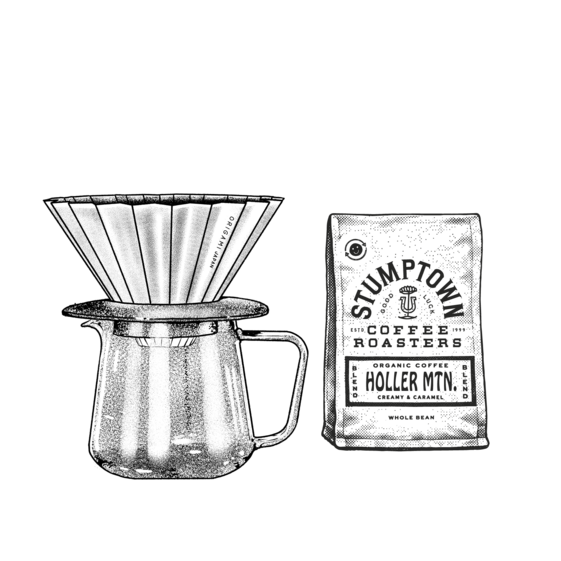 Measure out 21g (about 3 Tablespoons) of your favorite Stumptown coffee and grind it medium-fine like sea salt. Add the coffee to the filter, shaking it gently to level the grounds. Zero your scale if using.